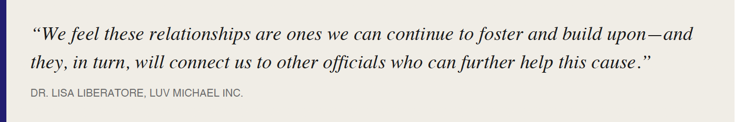 “The need is great,” said Dr. Lisa Liberatore, founder of Luv Michael, after the second day of meetings. “And parents are leading the charge and innovating—because, honestly, there really are no other options.”